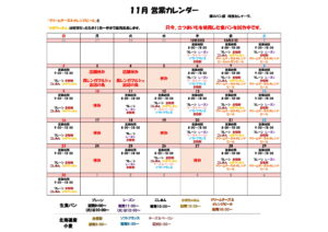 いつも当店をご利用いただきありがとうございます! 11月の営業カレンダーをお送りします…
